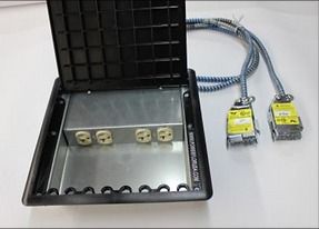 Each system floor box chain is powered by a connection to the building power source using a single connection cable.